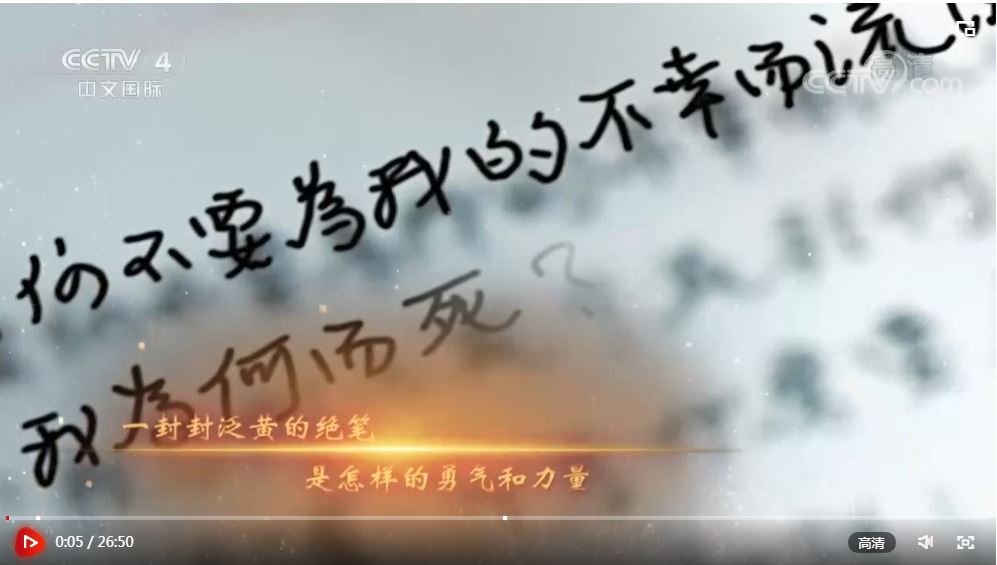 2022年清明之際,中央廣播電視總臺華語環(huán)球節(jié)目中心隆重推出六集專題紀錄片《絕筆》(第二季),解讀十四位共產(chǎn)黨員的絕筆,展現(xiàn)一批批革命先烈獻身中國革命、追求崇高信仰的犧牲精神。