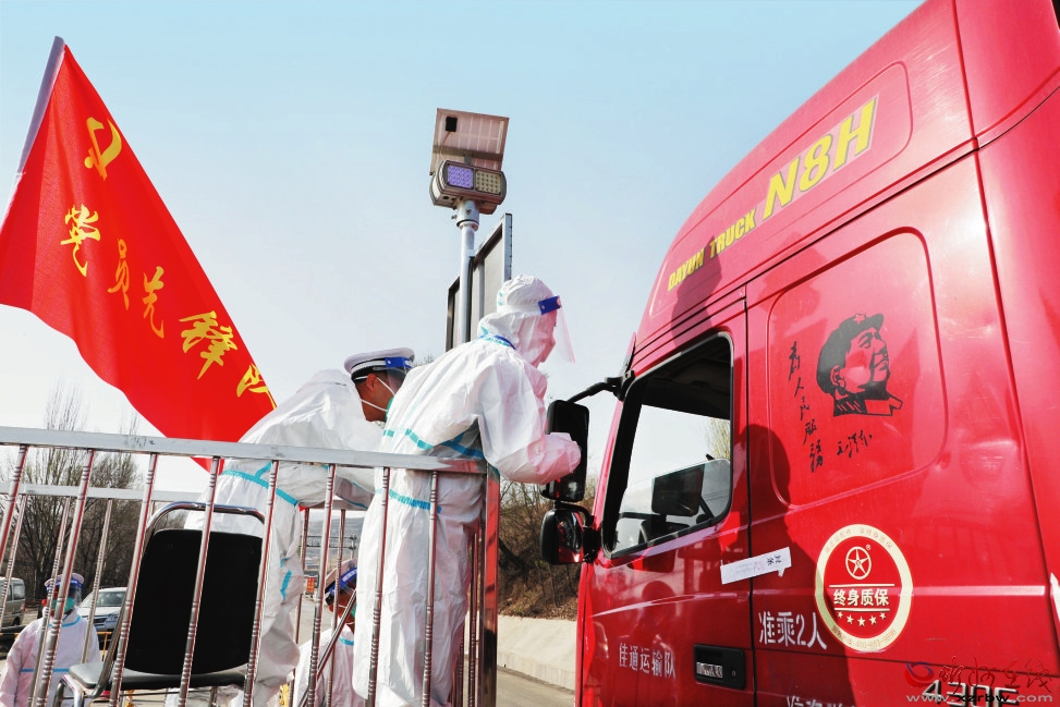 沖鋒在前,勇于擔當。黨員先鋒崗成為抗疫戰(zhàn)場的亮麗風景線。圖為原平市黨員志愿者在道路卡口值守。 褚 震攝