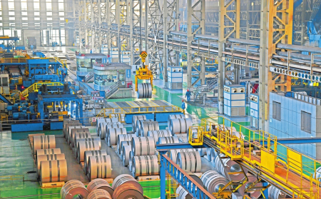 一卷卷鋼材成品排列整齊,3臺(tái)軋機(jī)隆隆作響,操作機(jī)器的人卻難覓蹤影。“現(xiàn)在車間自動(dòng)化的程度非常高,幾乎大部分的工作都由機(jī)器完成。”2號(hào)軋機(jī)前,安全生產(chǎn)部部長(zhǎng)房旭回答著記者的疑問,“你看這臺(tái)軋機(jī),它的啟動(dòng)和暫停其實(shí)并不在這里操作,而是在旁邊的智慧化集中控制中心實(shí)現(xiàn)的。工作人員在操作的同時(shí),那邊的系統(tǒng)還能同步記錄下實(shí)時(shí)的數(shù)據(jù),為后續(xù)的工序優(yōu)化和材料研發(fā)提供支持。”房旭所說的智慧化集中控制中心,投用于去年10月,除了“一鍵啟?!?,還實(shí)時(shí)記錄著整個(gè)車間的能源消耗和安全生產(chǎn)情況。