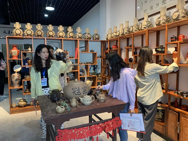 第十七屆全國網絡媒體山西行記者團來到參觀平定縣砂器(紫砂)文化示范區(qū)。記者楊惠生攝