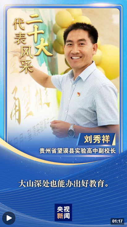 “二十大代表風(fēng)采”一起來認(rèn)識(shí)貴州省黔西南州望謨縣實(shí)驗(yàn)高中副校長(zhǎng)劉秀祥。