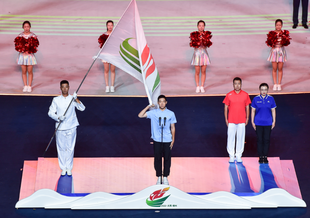 富有地域特色的暖場(chǎng)表演過后,在一萬多名現(xiàn)場(chǎng)觀眾聲震云霄的倒計(jì)時(shí)中,開幕儀式正式開始。國(guó)旗和會(huì)旗入場(chǎng)儀式后,各代表隊(duì)運(yùn)動(dòng)員、教練員在引導(dǎo)員和執(zhí)旗手的引導(dǎo)下,闊步入場(chǎng)。大同和朔州作為東道主,壓軸亮相,得到了觀眾的熱烈歡呼。之后,升國(guó)旗儀式和升會(huì)旗儀式莊嚴(yán)進(jìn)行,山西省第十六屆運(yùn)動(dòng)會(huì)宣布開幕。