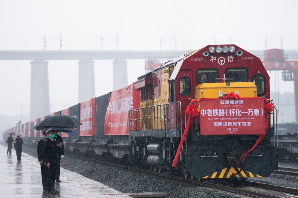 開往老撾萬(wàn)象的中老鐵路(懷化—萬(wàn)象)國(guó)際貨運(yùn)列車在湖南懷化國(guó)際陸港準(zhǔn)備發(fā)車(2023年1月6日攝)。新華社記者 陳思汗 攝
