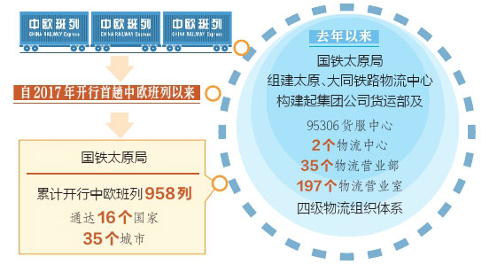 “自2017年開行首趟中歐班列以來,國鐵太原局累計開行的中歐班列已有958列,通達16個國家、35個城市?!眹F太原局貨運部科長田源介紹,“中歐班列已經(jīng)成為不沿海、不沿邊的山西省對外開放重要平臺?!?/p>