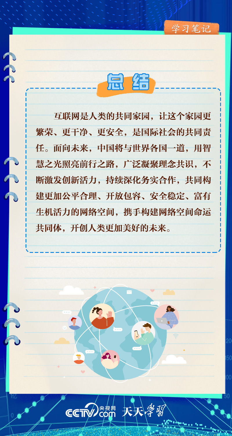 天天學(xué)習(xí)“互聯(lián)網(wǎng)發(fā)展是無國界、無邊界的,利用好、發(fā)展好、治理好互聯(lián)網(wǎng)必須深化網(wǎng)絡(luò)空間國際合作,攜手構(gòu)建網(wǎng)絡(luò)空間命運共同體?!泵鎸θ找姘l(fā)展擴大的網(wǎng)絡(luò)空間,習(xí)近平主席倡導(dǎo)構(gòu)建網(wǎng)絡(luò)空間命運共同體,為推動全球網(wǎng)絡(luò)空間互聯(lián)互通、共享共治注入中國智慧。