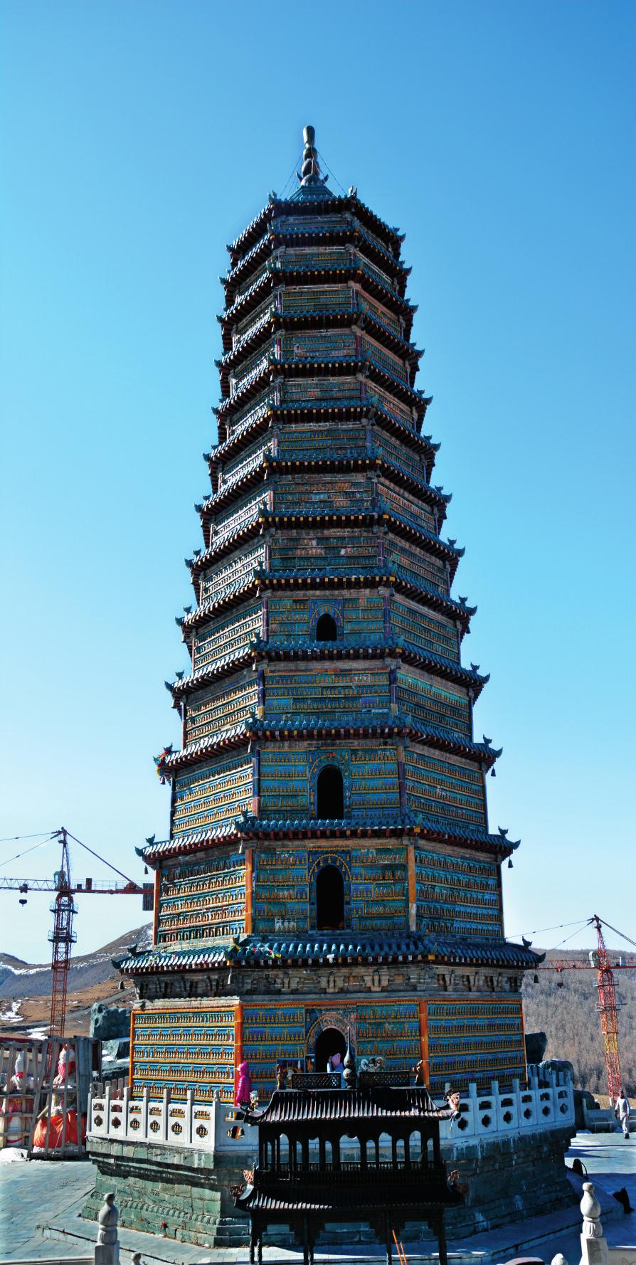 繁峙琉璃塔據(jù)五層塔銘記載為明萬歷二十七年(公元1599年)春季吉日造,萬歷三十二年(公元1604年)完工。造塔匠人王慶,直隸真定府定州城人。塔原坐落在五臺山大護(hù)國文殊寺中軸線上,在大雄寶殿之后,藏經(jīng)樓之前,是五臺山大護(hù)國文殊寺主要建筑之一?,F(xiàn)五臺山大護(hù)國文殊寺除繁峙琉璃塔為明代建筑外,其他都為新建。