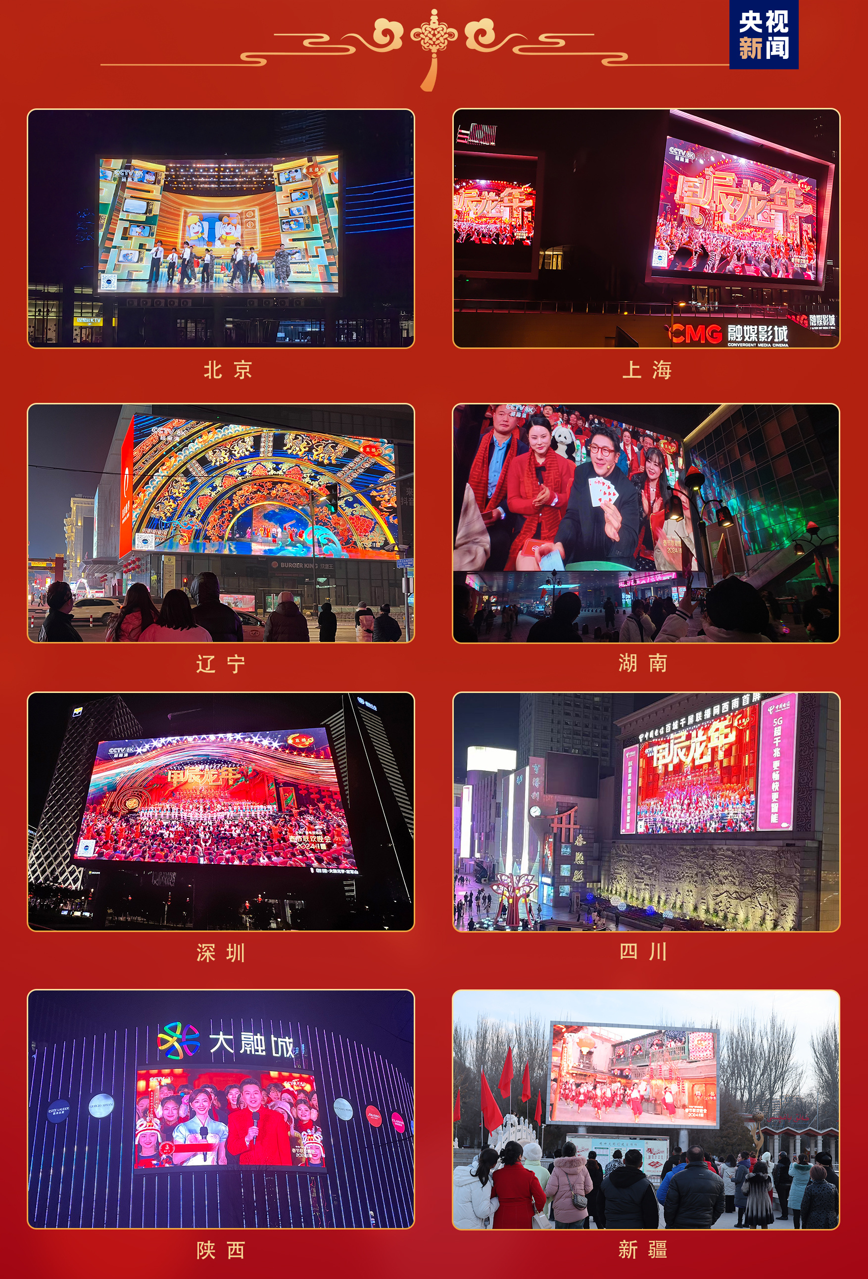 全球看春晚。作為聯(lián)合國(guó)大會(huì)將農(nóng)歷新年列為聯(lián)合國(guó)假日后的首個(gè)新年,總臺(tái)主辦的“春晚序曲 全球看春晚”活動(dòng)在美國(guó)、肯尼亞、瑞士等多國(guó)舉辦近40場(chǎng);各大洲49個(gè)國(guó)家、90座城市的3000余塊公共大屏直播和宣介總臺(tái)春晚;世界最高建筑迪拜哈利法塔、非洲第一高樓埃及新行政首都中央商務(wù)區(qū)標(biāo)志塔、瑞典斯德哥爾摩市中心國(guó)王花園廣場(chǎng)、巴西多娜·琳杜公園等多個(gè)全球地標(biāo)性建筑上演春晚燈光秀……靈動(dòng)吉祥的“龍辰辰”將中國(guó)新年的美好祝愿?jìng)鞅槿颉?/p>