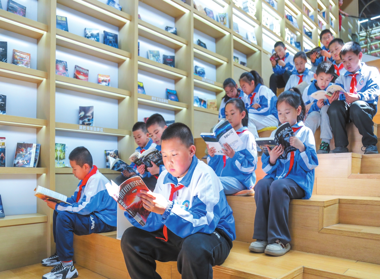 娘子關(guān)磚縫萌發(fā)新綠,礦山軌道延展為書(shū)徑。書(shū)香伴著春光,一直延伸到桃河岸邊。公園里,長(zhǎng)長(zhǎng)的書(shū)廊倚翠而設(shè),市民捧卷靜立,春花落滿書(shū)頁(yè)。這座曾以火花照亮北方的城市,正將工業(yè)文明的硬朗骨骼,熔鑄成全民閱讀的錚錚鐵骨。