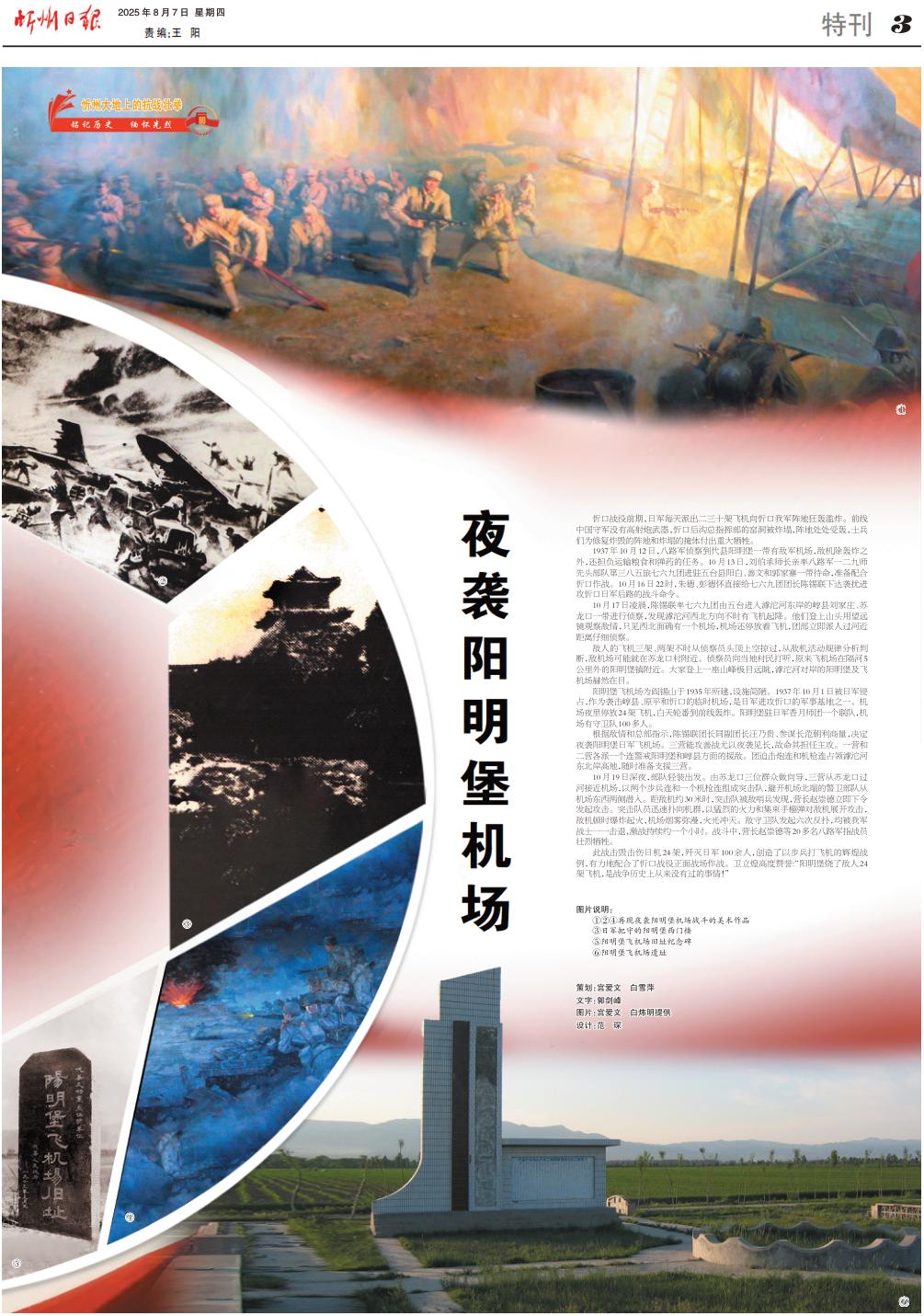 忻口戰(zhàn)役前期,日軍每天派出二三十架飛機(jī)向忻口我軍陣地狂轟濫炸。前線中國守軍沒有高射炮武器,忻口后溝總指揮部的窯洞被炸塌,陣地處處受轟,士兵們?yōu)樾迯?fù)炸毀的陣地和炸塌的掩體付出重大犧牲。 1937年10月12日,八路軍偵察到代縣陽明堡一帶有敵軍機(jī)場,敵機(jī)除轟炸之外,還擔(dān)負(fù)運(yùn)輸糧食和彈藥的任務(wù)。10月13日,劉伯承師長親率八路軍一二九師先頭部隊(duì)第三八五旅七六九團(tuán)進(jìn)駐五臺(tái)縣陽白、善文和郭家寨一帶待命,準(zhǔn)備配合忻口作戰(zhàn)。10月16日22時(shí),朱德、彭德懷直接給七六九團(tuán)團(tuán)長陳錫聯(lián)下達(dá)襲擾進(jìn)攻忻口日軍后路的戰(zhàn)斗命令。 10月17日凌晨,陳錫聯(lián)率七六九團(tuán)由五臺(tái)進(jìn)入滹沱河?xùn)|岸的崞縣劉家莊、蘇龍口一帶進(jìn)行偵察,發(fā)現(xiàn)滹沱河西北方向不時(shí)有飛機(jī)起降。他們登上山頭用望遠(yuǎn)鏡觀察敵情,只見西北面確有一個(gè)機(jī)場,機(jī)場還停放著飛機(jī),團(tuán)部立即派人過河近距離仔細(xì)偵察。 敵人的飛機(jī)三架、兩架不時(shí)從偵察員頭頂上空掠過,從敵機(jī)活動(dòng)規(guī)律分析判斷,敵機(jī)場可能就在蘇龍口村附近。偵察員向當(dāng)?shù)卮迕翊蚵?,原來飛機(jī)場在隔河5公里外的陽明堡鎮(zhèn)附近。大家登上一座山峰極目遠(yuǎn)眺,滹沱河對(duì)岸的陽明堡及飛機(jī)場赫然在目。 陽明堡飛機(jī)場為閻錫山于1935年所建,設(shè)施簡陋。1937年10月1日被日軍侵占,作為襲擊崞縣、原平和忻口的臨時(shí)機(jī)場,是日軍進(jìn)攻忻口的軍事基地之一。機(jī)場夜里停放24架飛機(jī),白天輪番到前線轟炸。陽明堡駐日軍香月師團(tuán)一個(gè)聯(lián)隊(duì),機(jī)場有守衛(wèi)隊(duì)100多人。 根據(jù)敵情和總部指示,陳錫聯(lián)團(tuán)長同副團(tuán)長汪乃貴、參謀長范朝利商量,決定夜襲陽明堡日軍飛機(jī)場。三營能攻善戰(zhàn)尤以夜襲見長,故命其擔(dān)任主攻。一營和二營各派一個(gè)連警戒陽明堡和崞縣方面的援?dāng)?。團(tuán)迫擊炮連和機(jī)槍連占領(lǐng)滹沱河?xùn)|北岸高地,隨時(shí)準(zhǔn)備支援三營。 10月19日深夜,部隊(duì)輕裝出發(fā)。由蘇龍口三位群眾做向?qū)?,三營從蘇龍口過河接近機(jī)場,以兩個(gè)步兵連和一個(gè)機(jī)槍連組成突擊隊(duì),避開機(jī)場北端的警衛(wèi)部隊(duì)從機(jī)場東西兩側(cè)潛入。距敵機(jī)約30米時(shí),突擊隊(duì)被敵哨兵發(fā)現(xiàn),營長趙崇德立即下令發(fā)起攻擊。突擊隊(duì)員迅速撲向機(jī)群,以猛烈的火力和集束手榴彈對(duì)敵機(jī)展開攻擊,敵機(jī)頓時(shí)爆炸起火,機(jī)場煙霧彌漫,火光沖天。敵守衛(wèi)隊(duì)發(fā)起六次反撲,均被我軍戰(zhàn)士一一擊退,激戰(zhàn)持續(xù)約一個(gè)小時(shí)。戰(zhàn)斗中,營長趙崇德等20多名八路軍指戰(zhàn)員壯烈犧牲。 此戰(zhàn)擊毀擊傷日機(jī)24架,殲滅日軍100余人,創(chuàng)造了以步兵打飛機(jī)的輝煌戰(zhàn)例,有力地配合了忻口戰(zhàn)役正面戰(zhàn)場作戰(zhàn)。衛(wèi)立煌高度贊譽(yù):“陽明堡燒了敵人24架飛機(jī),是戰(zhàn)爭歷史上從來沒有過的事情!” 策劃: : 宮愛文 白雪萍 文字: : 郭劍峰 圖片: : 宮愛文 白煒明提供 設(shè)計(jì): : 范 琛 (責(zé)任編輯:盧相汀) |