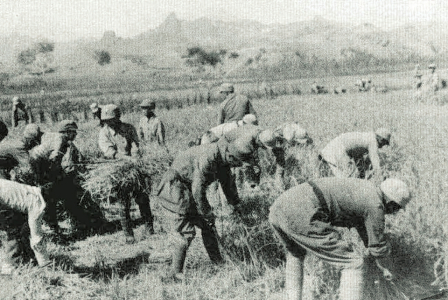 八路軍某部和群眾一起采集樹葉充饑,堅持抗戰(zhàn)。