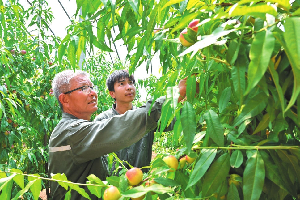 在三新模式示范園里,智慧農(nóng)業(yè)設(shè)備實(shí)時監(jiān)測土壤墑情,機(jī)械化修剪機(jī)正在作業(yè)?!耙郧翱刻斐燥垼F(xiàn)在靠科技增收?!奔h(yuǎn)杰擦著汗說。這片曾經(jīng)的荒坡地,如今已成為集種植、加工、觀光于一體的現(xiàn)代農(nóng)業(yè)示范園,通過建立良好的“公司+基地+農(nóng)戶”運(yùn)行機(jī)制,帶動周邊5村280戶年均增收3000元至5000元,村集體經(jīng)濟(jì)增收3萬余元。